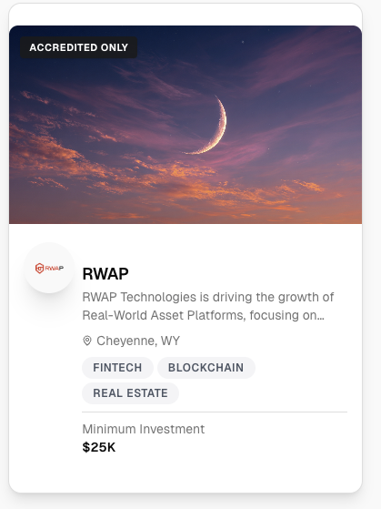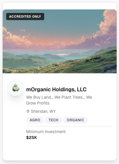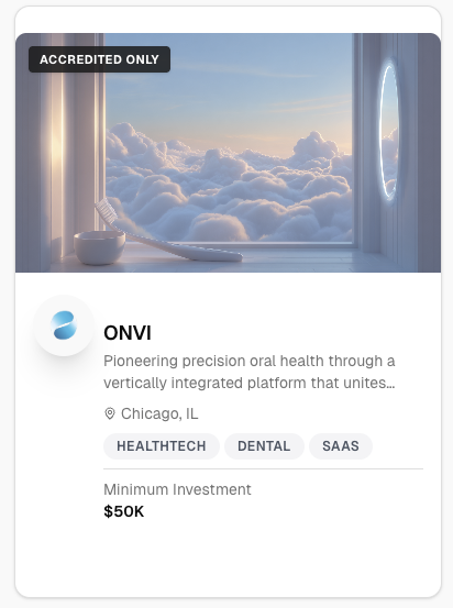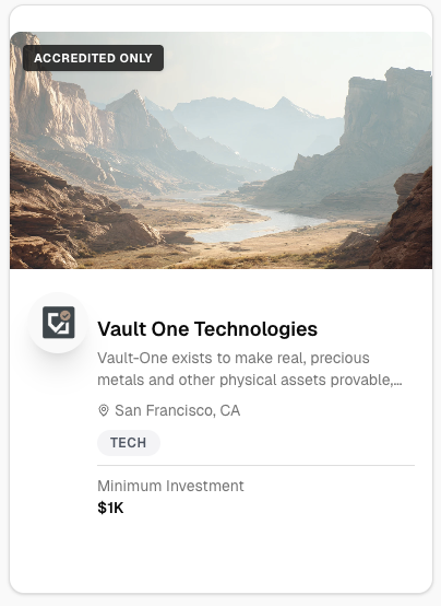 Browse offeringsVerify once. Browse every 506(c) offering on the platform. No repeated paperwork. No friction.