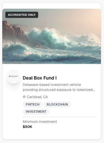 Deal Box isn't a broker. We're a matchmaker. We introduce you directly to issuers and step aside. No transaction fees. No carry. Every dollar you commit goes to work for you.